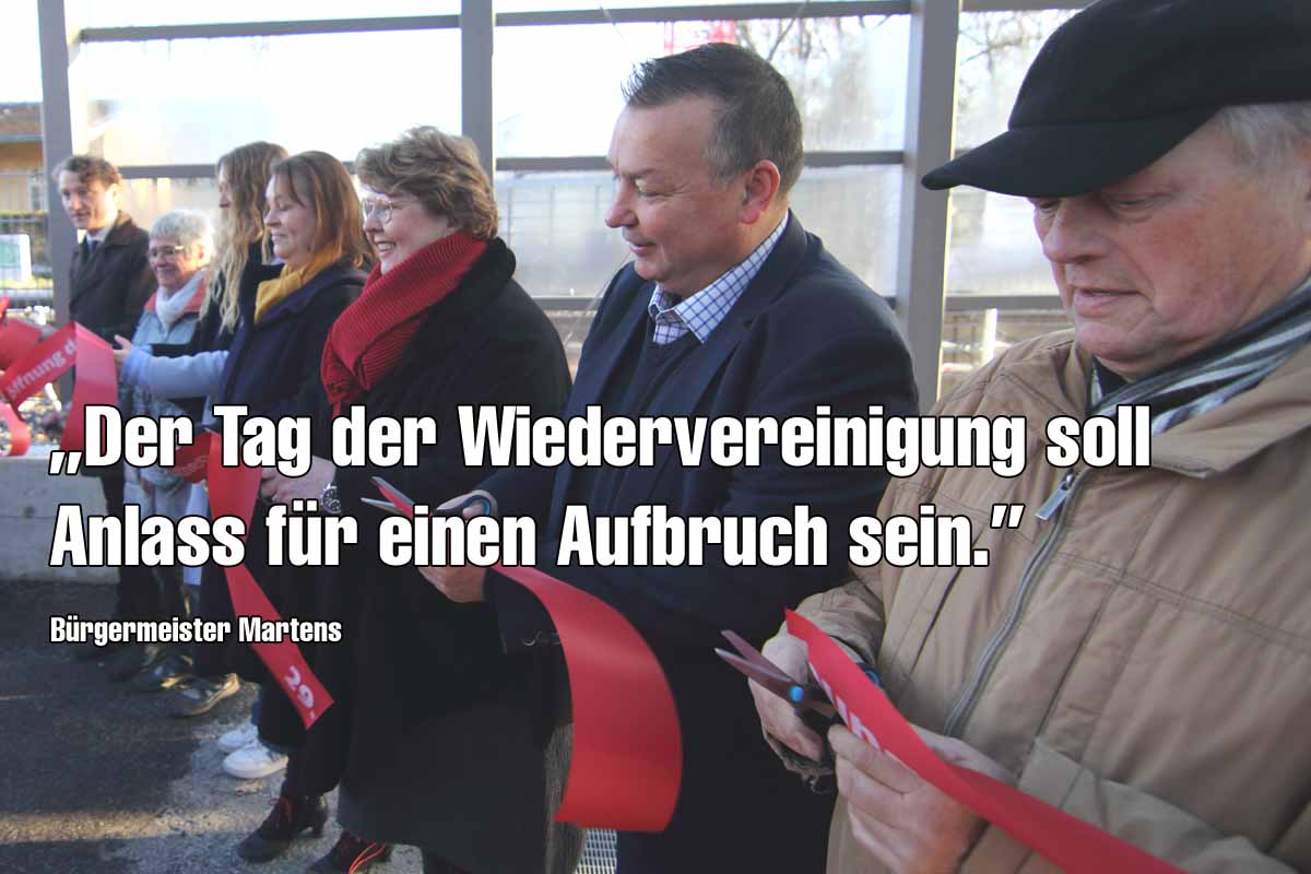Der Bürgermeister weiter: „Der Tag der Wiedervereinigung soll Anlass für einen Aufbruch sein. Im kommenden Jahr feiern wir 650 Jahre Zeuthen. Das soll ein Jahr des Zusammenwachsens und der Gemeinsamkeiten werden.“