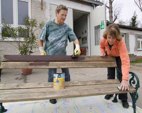 Auf dem Gelände des Bauhofes wurden Sitzbänke geschliffen und gestrichen. Sie werden in Kürze im neuen Glanz am Dorfanger stehen und müde Spaziergänger zum Verweilen einladen.