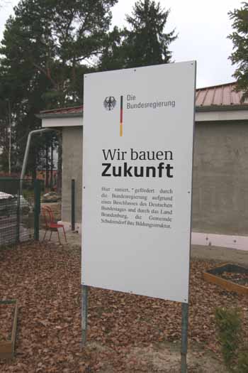 So wird derzeit Schulzendorfs Kita Märchenland auf den Kopf gestellt. Damit sich die Kinder auch in Zukunft wohl in ihrem großen Spielzimmer fühlen und viel Spaß haben, begannen jüngst umfangreiche Bauarbeiten. Die Fassade wird gedämmt und erhält ein neues Antlitz, die Geschossdecke zum Dach wird wärmegedämmt, die Elektroanlage wird überarbeitet, neue Innentüren und Bodenbelege werden eingebaut, eine Sauna wird installiert und eine Blitzschutzanlage wird aufgebaut. Rund 110.000 Euro werden die Arbeiten kosten. Im wesentlichen soll die Baumaßnahme am 31.12.2009 abgeschlossen sein. Gefördert wird das Ganze aus dem Konjunkturpaket. Die Hauptlast der Arbeiten ruht auf den Schultern der Firma Altentreptow GmbH.