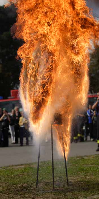 “Sehr viele Brände werden im Haushalt verursacht.”, verriet Feuerwehrchef Rene Keller. Am Beispiel einer Fettexplosion wurde demonstriert, dass Wasser nicht immer das besten Löschmittel ist. Denn kommt es tatsächlich dazu, dass das Fett in der Fritteuse oder der Pfanne in Flammen steht, sollte eine Decke über den Brandherd geworfen werden um das Feuer zu ersticken. Wasser als Löschmittel würde eine riesen Stichflamme bewirken und im schlimmsten Fall einen Brand auslösen.