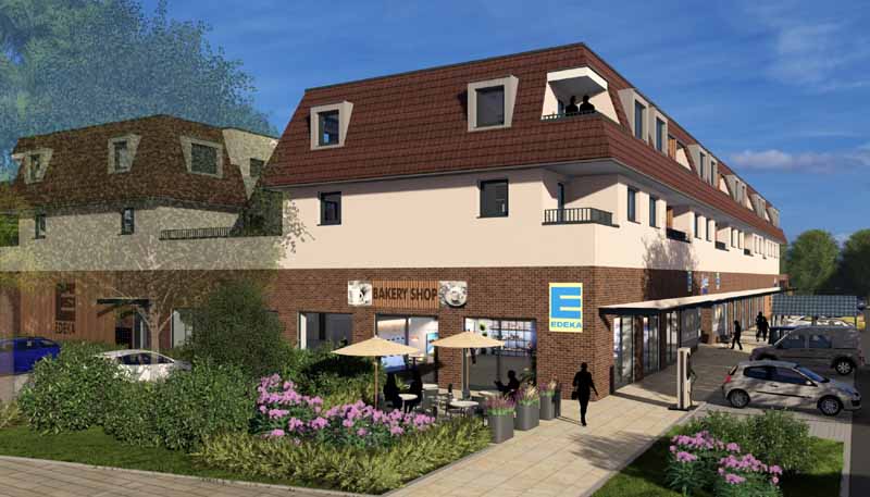 So sollen der EDEKA-Bau und das Wohnprojekt aussehen. (Foto: NOVA-Gruppe Berlin)